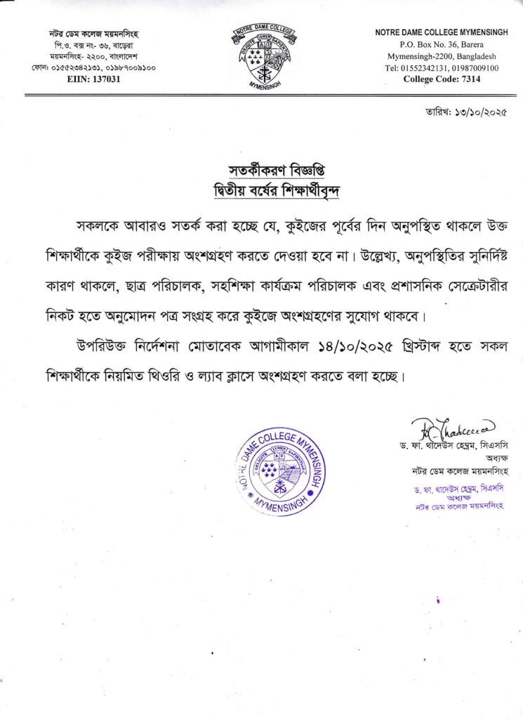 দ্বিতীয় বর্ষের সংশোধিত বিশেষ ক্লাস রুটিন