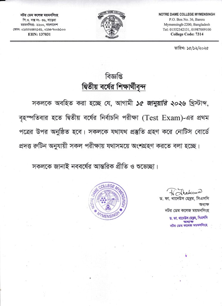 দ্বিতীয় বর্ষের নির্বাচনি পরীক্ষা প্রসঙ্গে