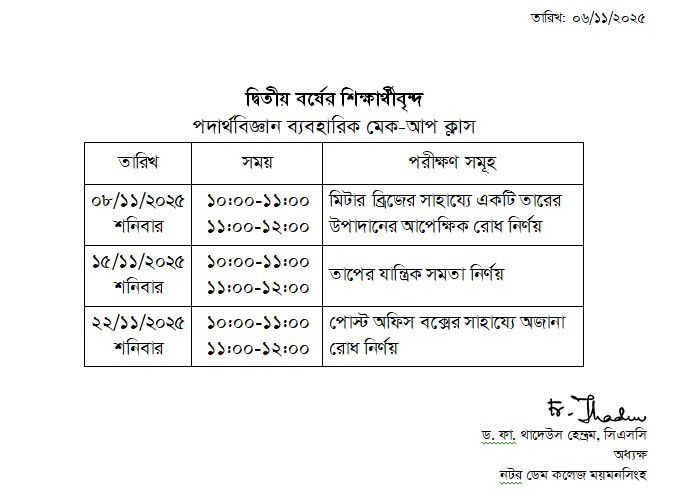 দ্বিতীয় বর্ষের আইসিটি ব্যবহারিক মেক-আপ ক্লাস রুটিন