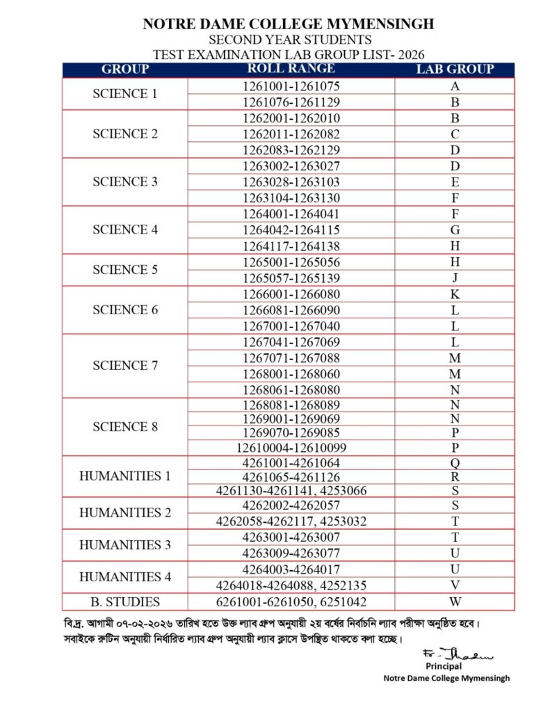 দ্বিতীয় বর্ষের ল্যাব পরীক্ষার রুটিন