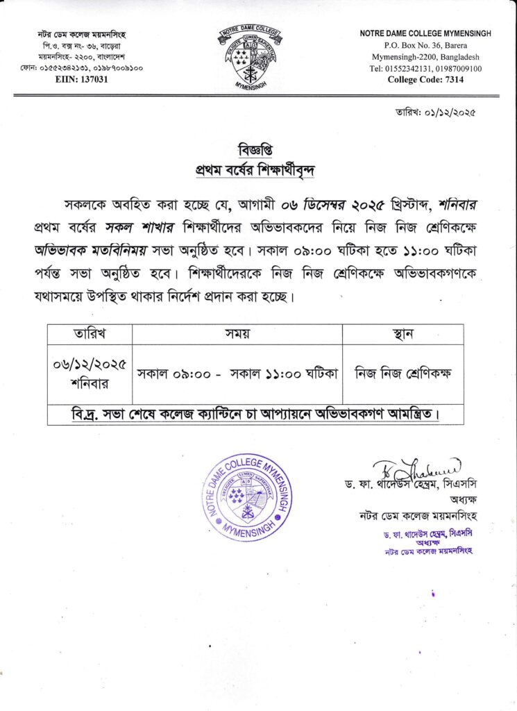প্রথম বর্ষের ল্যাব ক্লাস রুটিন