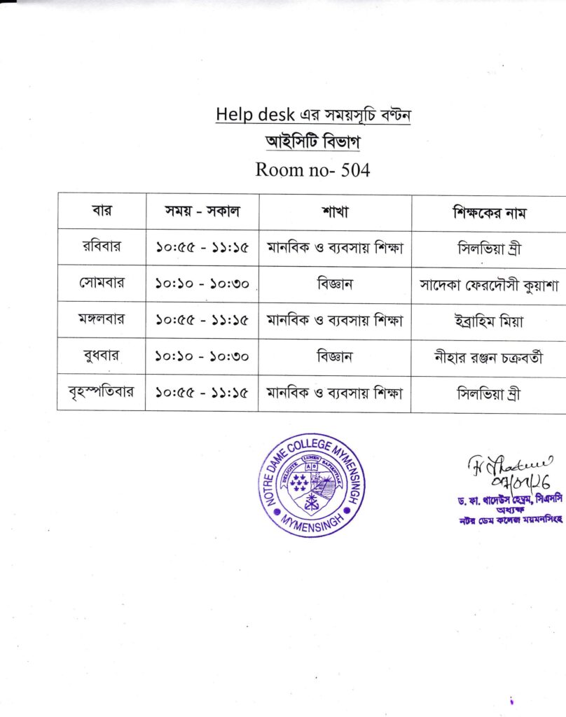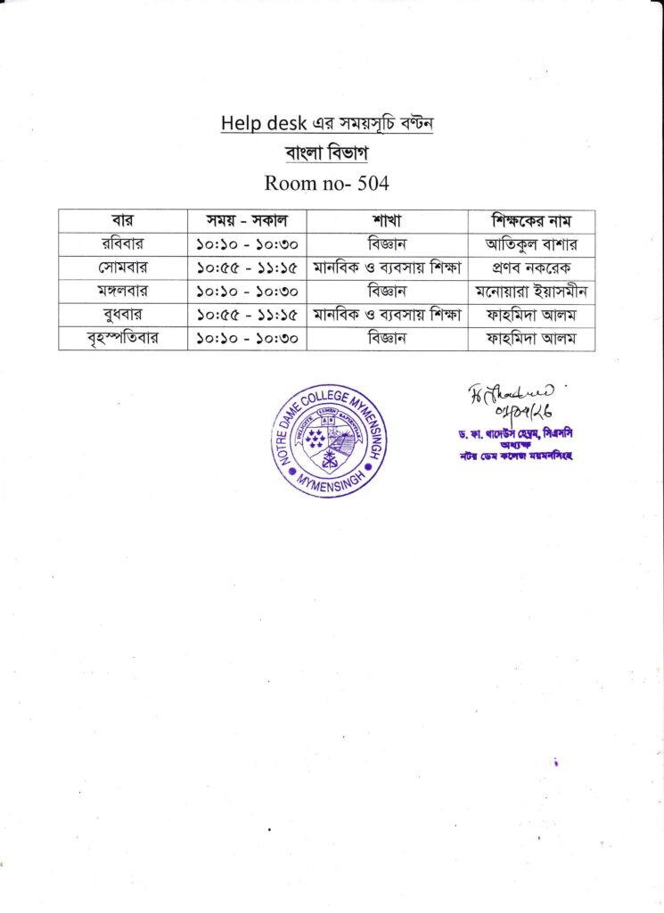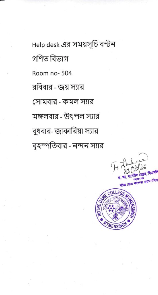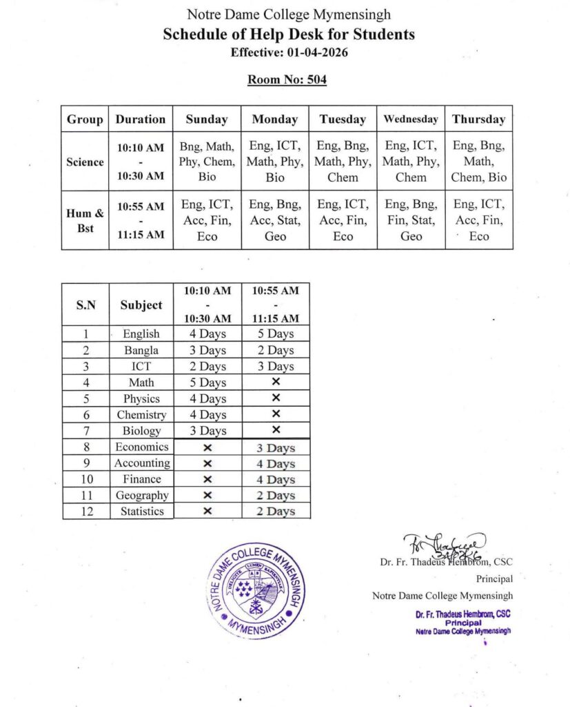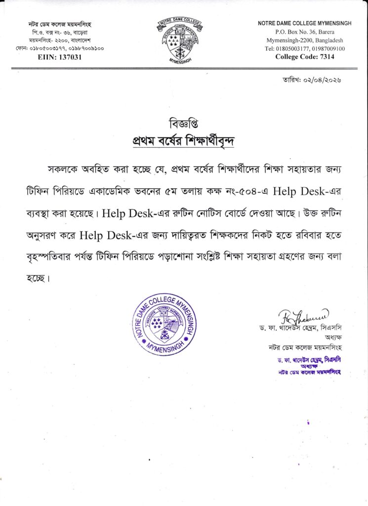 প্রথম বর্ষের বিশেষ ক্লাস রুটিন এবং ইস্টার সানডে উপলক্ষ্যে কলেজ বন্ধ প্রসঙ্গে