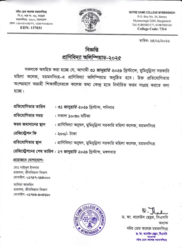 প্রাণিবিদ্যা অলিম্পিয়াড-২০২৫