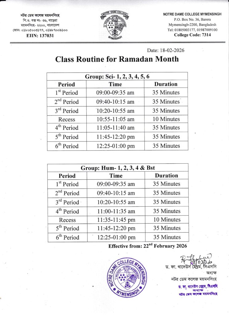 পবিত্র মাহে রমজানের প্রথম দিন প্রথম বর্ষের ক্লাস কার্যক্রম বন্ধ প্রসঙ্গে