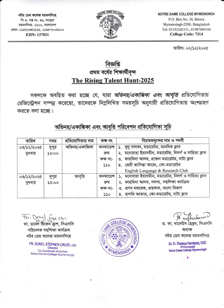 The Rising Talent Hunt – 2025 অভিনয় /একাঙ্কিকা এবং আবৃত্তি প্রতিযোগিতা সূচিBy admin / December 2, 2025